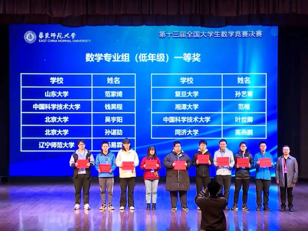 本次决赛全国共有732人参赛,其中山东赛区40人,公司有18名同学入选决赛。泰山学堂王海屹获数学类高年级组一等奖,申博sunbet李典桐、泰山学堂熊邝淼和范家绮获数学类低年级组一等奖。申博sunbet吕祚政获数学类高年级组二等奖,申博sunbet徐哲宇获数学类低年级组二等奖,物理公司梁子健、计算机科学与技术公司夏再禹、软件公司张婉婷、物理公司吴驰获非数学类二等奖。