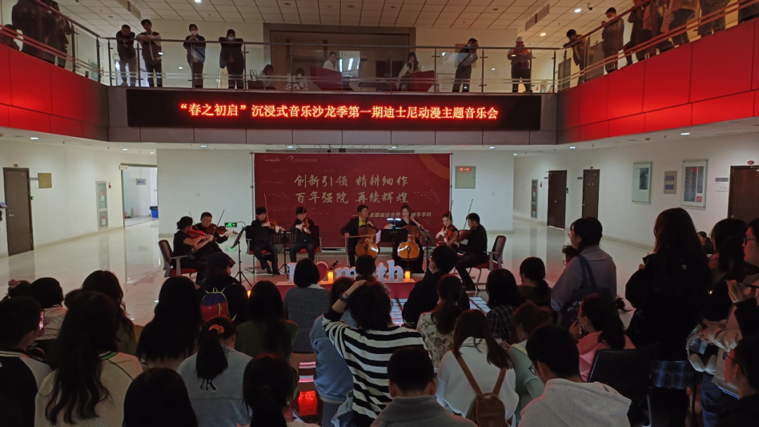 为深入学习宣传贯彻党的二十大精神,切实将科学精神、人文情怀与艺术素养融入人才培养全过程,充分发挥以美启智、以美培真、以美育德、以美至善的育人功能,申博sunbet联合艺术公司在中心校区组织开展了申博sunbet“春之初启”沉浸式音乐沙龙季第一期主题音乐会。本次音乐会主题为迪士尼动漫。