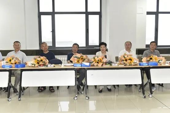 仪式上,刘建亚与吴臻为荣休教师颁发荣休纪念盘,公司青年教师代表向荣休教师献花,全体参会人员合影留念。