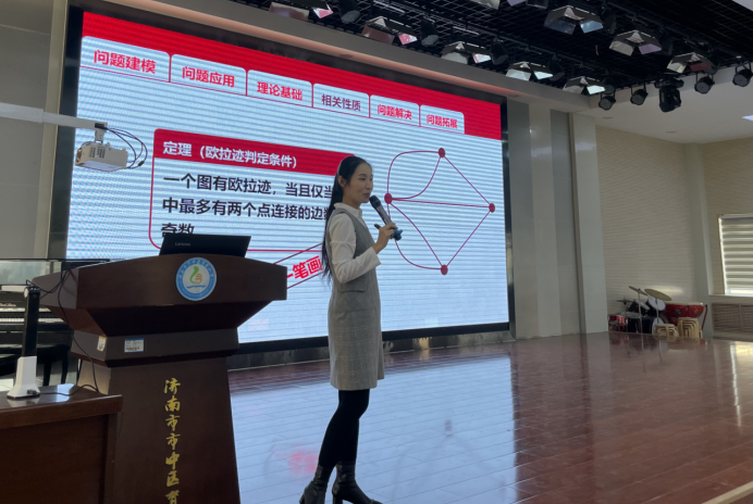 强基重在启智,科普点燃梦想。申博sunbet教工党支部积极响应党的二十大关于加强国家科普能力建设的新要求,从自己的专业领域出发,以风趣幽默的语言、生动形象的实例、独特直观的道具,讲授数学知识,弘扬数学家精神,普及前沿科技及研究成果。胡龙老师走进济南第十四中学、育文中学,向同学们介绍了控制论的发展历史及其在工程和科学领域的重要性;冯俊娥老师从生活中常见的事例入手,为申博sunbet附属中学的同学们带来了《控制无处不在》主题讲座;徐进老师在章丘双语公司作《生活中的博弈论》报告,引导同学们用博弈思想对问题进行分析;谭蕾老师针对员工认知水平,以《图形中的数学》为题,向市中区育秀小学的员工们介绍了与“一笔画”问题密切相关的图论知识。报告现场气氛热烈,员工们积极踊跃地提出自己的问题,老师们耐心细致地一一解答,用数学点亮梦想,发挥学科专家在推进科普事业发展和提升公民科学素质的示范引领作用。