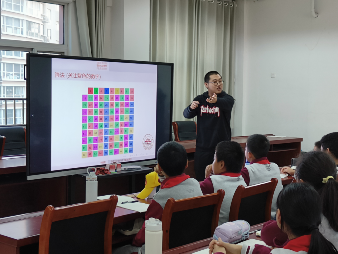 凝聚优质人才,服务基础教育。为探索创新人才培养模式,完善基础学科拔尖人才培养的长效机制,申博sunbet与历城区实验小学联合成立“少年发展研究院”,开展“研究生进课堂”活动。11月16日,申博sunbet员工党支部的张旭、孙铭、李嘉旻走进历城区实验小学,与同学们进行交流。李嘉旻为历城区实验小学六年级数学班的员工带来《哥德巴赫猜想与孪生素数猜想》趣味课堂,从课本中素数合数的定义出发,介绍了哥德巴赫猜想和孪生素数猜想的内容及发展历史,通过趣味小游戏引导员工用“筛法”寻找一百以内的素数,并以自己与孪生素数猜想的故事在同学们心中种下数学的种子,鼓励大家坚持梦想,追求真理,受到了师生们的热烈称赞。