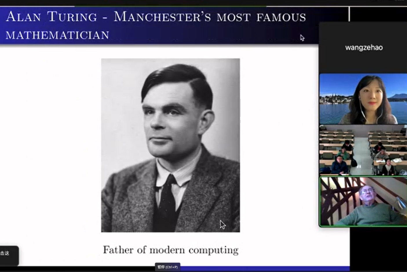 Peter Duck教授向与会师生展示了曼大建校200周年以来的光辉历史、校园环境和院校成绩,并对曼大申博sunbet的学科构成、学科实力以及曾在此求学任教的知名数学家进行了详细介绍。