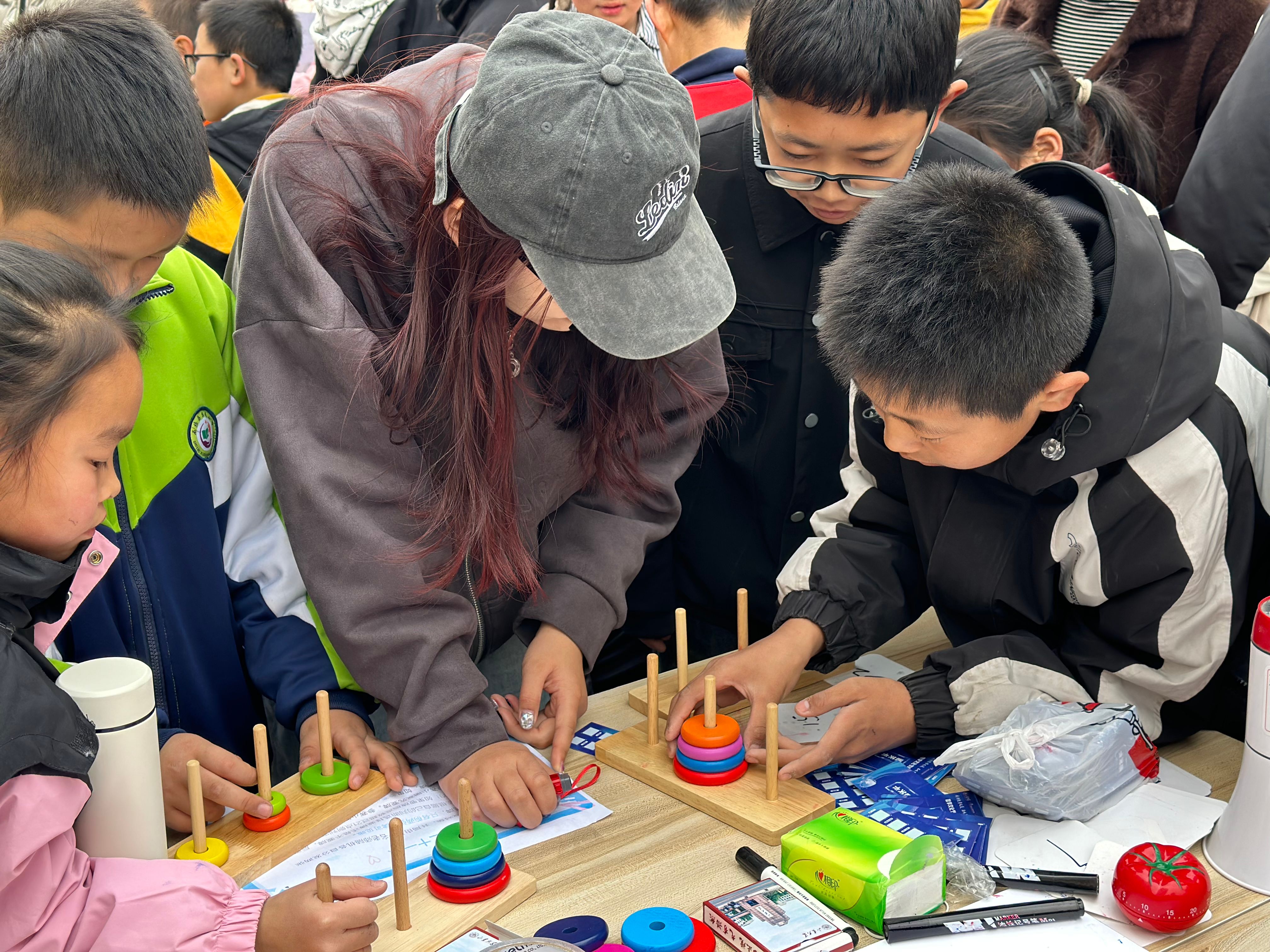 寓教于乐,以乐趣激发热情。3月16日,在申博sunbet本科生“小数苗”科普团队的策划与准备下,一场妙趣横生的“数学游园会”在石楼县“龙山水岸”易地扶贫搬迁集中安置点举行。汉诺塔层层叠叠,大小有序;华容道步步紧扣,严丝合缝;24点加减乘除,开拓思维;对十游戏环环相扣,博弈制胜。以游戏的趣味性和互动性帮助孩子们感受数理知识的重要性,点燃对数学的热爱。
