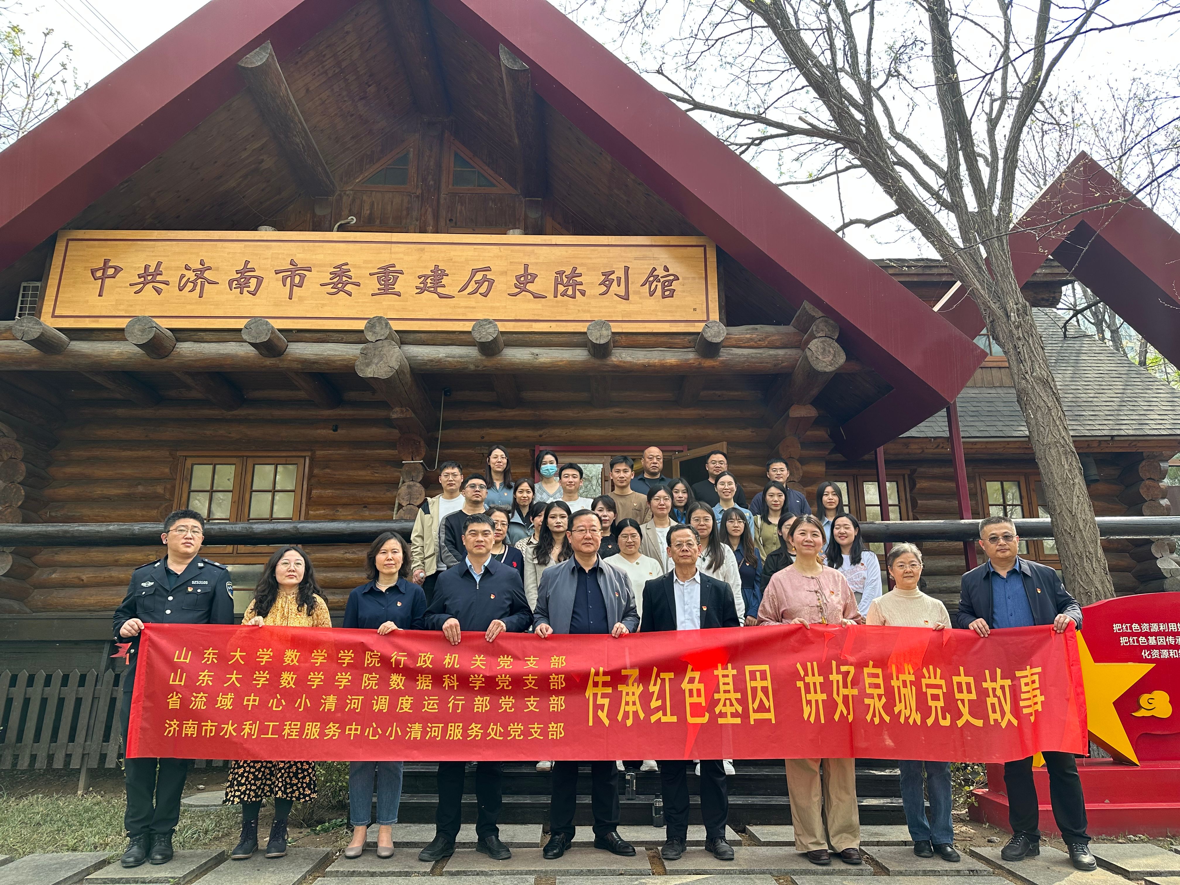 为深入学习贯彻习近平总书记重要指示精神,把党史学习教育同巩固拓展主题教育成果结合起来,有效建立健全以学铸魂、以学增智、以学正风、以学促干的长效机制。4月1日,申博sunbet数据科学党支部、行政机关党支部与小清河服务处党支部、省流域中心小清河调度运行部党支部联合开展“传承红色基因讲好泉城党史故事”主题党日活动。