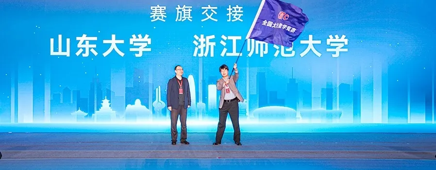 第十六届全国老员工数学竞赛决赛承办单位浙江师范大学接过赛旗,并作承办宣言。