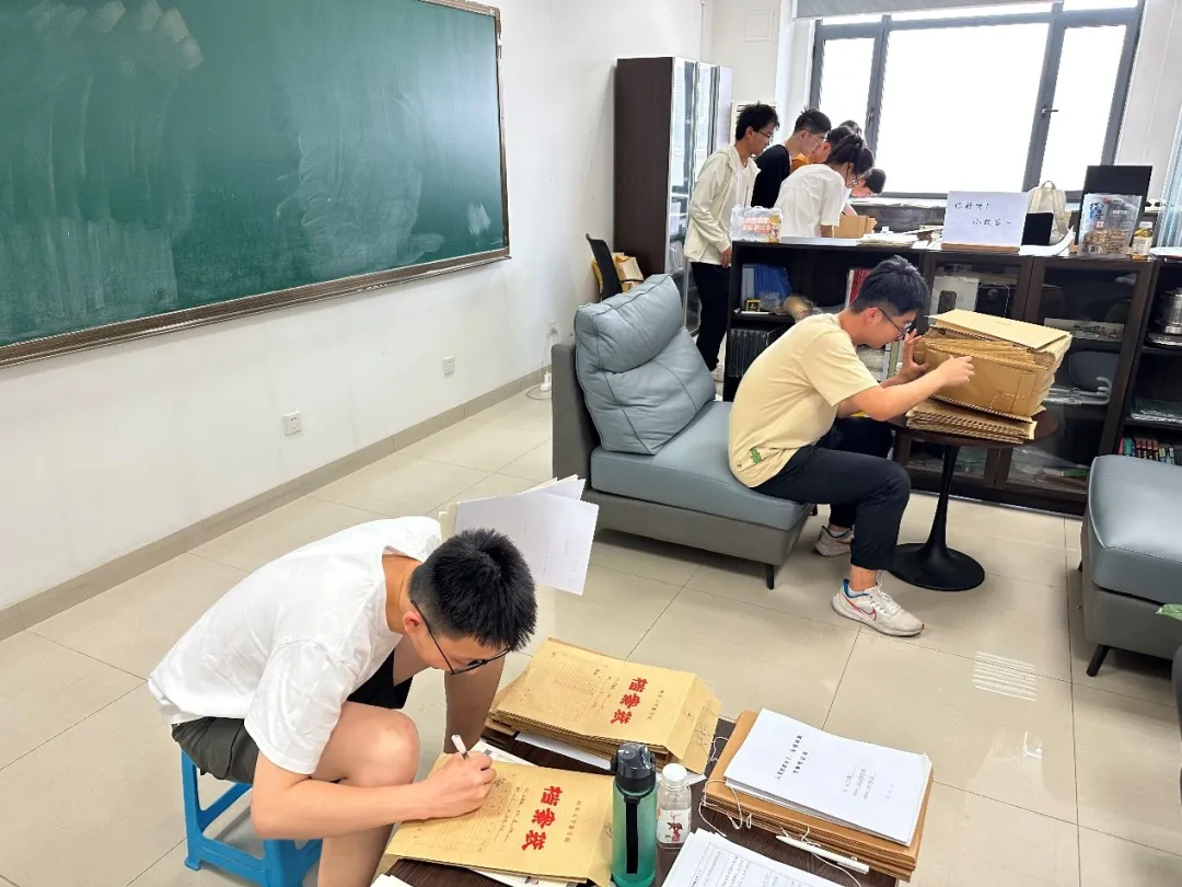 毕业生党员积极协助同学们完成纸箱等物资发放、组织关系转移、档案整理转寄、毕业典礼组织等相关工作,用心办好实事,争做文明离校的表率,以模范行动带动全体毕业生文明、安全、顺利离校。