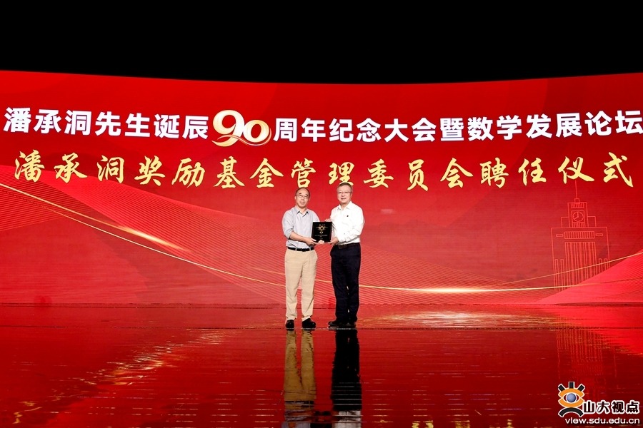 会上举行了潘承洞奖励基金管理委员会聘任仪式,任友群为焦震颁发委员会副主任聘书。焦震分享了自己在山大与数学结缘的经历,表示将持续关心和支持数学研究和公司事业发展,希望基金激励师生投身数学基础研究,在数学应用及相关领域提出更高目标、实现更多突破、取得更好成绩、作出更大贡献。