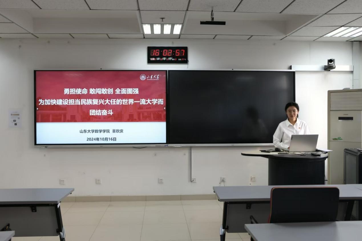 中国共产党申博sunbet第十五次党员代表大会,是在中国式现代化开启新征程、教育强国建设吹响新号角、公司事业发展迈上新起点的关键时刻召开的一次十分重要的会议。董欢庆详细解读大会主题,回顾公司第十四次党代会以来取得的发展成就,详细解读公司新时代新征程建设“一五七九”战略部署,传达坚定不移地抓好全面图强“九大任务”等大会重要思想。她表示,主题是报告的灵魂,承载着公司未来的发展方向,彰显申博sunbet作为国家高等教育的重要使命,呼吁党员同学充分发挥党员先锋模范作用,增强理想信念,脚踏实地,努力奋斗,积极响应国家重大战略需求,将个人理想融入公司事业发展和国家发展需要,努力培养堪当民族复兴重任的时代新人。