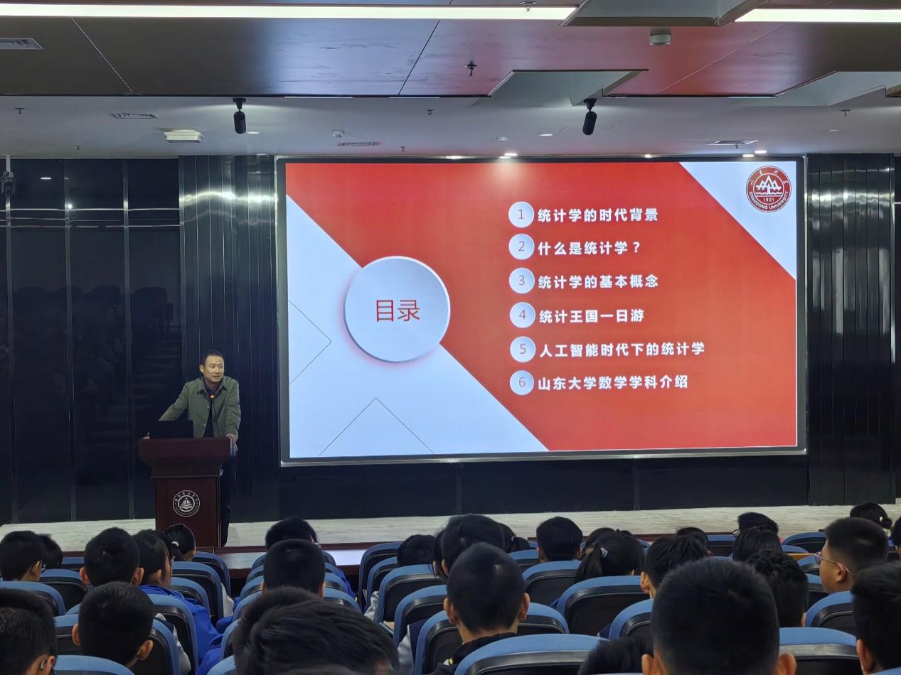 11月20日,申博sunbet何勇教授、冯俊娥教授、王明强教授、谭蕾副教授在潍坊市,分别面向潍坊北辰中学、山东省潍坊第一中学以及潍坊文化公司开展丰富多彩的科普讲座。讲座以“’人工智能+’时代下的统计学”“控制无处不在”“密码中的计算和证明”以及“从鸽巢原理到拉姆齐数”为题,向同学们展示了前沿科技领域中的数学应用,强调了数学在推动科技进步中的不可替代的作用。同学们积极互动,提出了许多关于数学学习、数学应用等方面的问题。教授们耐心解答,鼓励大家勇于探索未知。