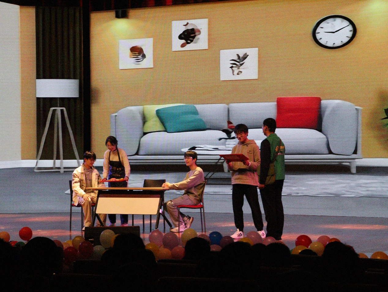 晚会以申博sunbet街舞协会带来的舞蹈《One World》拉开序幕,动感的节奏、炫酷的舞姿瞬间点燃了现场气氛。在第一篇章“群新璀璨,数海扬帆”中,数彩飞扬合唱团演唱的《我喜欢》将日常生活的温情与美好展现的淋漓尽致;快板《数星耀山大》巧妙地将数学元素融入传统艺术形式,展现了公司悠久历史和数学人的风采智慧;话剧《成人礼》通过生动的表演,讲述了老员工从青涩走向成熟的心路历程;本科新生辅导员张枫林深情演唱的《父亲写的散文诗》,诠释了父爱的伟大和温暖。