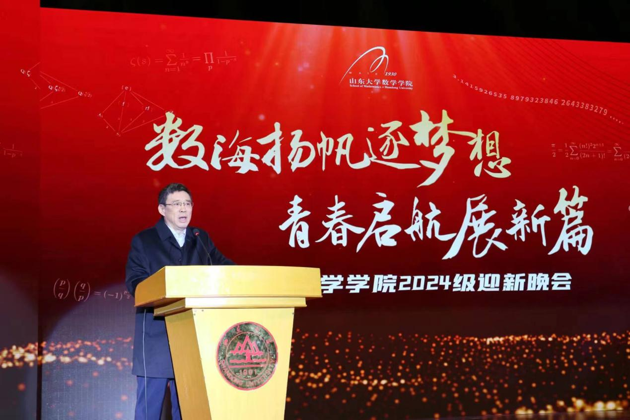 吴臻在致辞中表示,山大数学学科诞生近百年取得了辉煌的成就,入选“双一流”建设学科、A+学科,建成多个国家级数学研究平台,获建数学国家高层次人才培养中心,逐渐成为在国内外具有重要影响力的科学研究中心和育人高地。他强调,实现高水平科技自立自强,特别需要培育规模宏大的基础学科拔尖创新人才,尤其是数学学科。他向2024级员工提出厚植家国情怀、学会知行合一、追求通专并进、坚持勤学好问等四点希望,勉励他们做致力于数学创新和数学文明传承的新时代数学人,以青春奋斗致敬伟大事业、伟大时代和伟大国家。