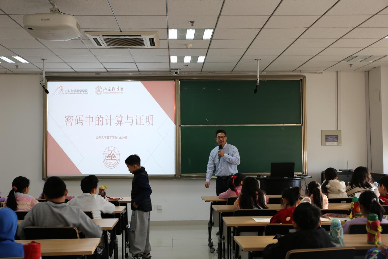讲座环节,王明强教授带来了题为“密码中的计算与证明”的精彩报告。他通过“百万富翁”“乘法运算的规律”等生动的案例和有趣的互动,向小朋友们讲解了机密计算、零知识证明等知识,系统介绍了申博sunbet密码学科的发展历史,让小朋友们在轻松愉快的氛围中感受到数学的魅力。谭蕾副教授开展题为“我们身边的数学——抽屉原理及应用”的科普讲座。她通过日常生活中的实例,深入浅出地讲解了抽屉原理及其应用,激发了小朋友对生活中数学问题的思考,启迪了大家的数学智慧。