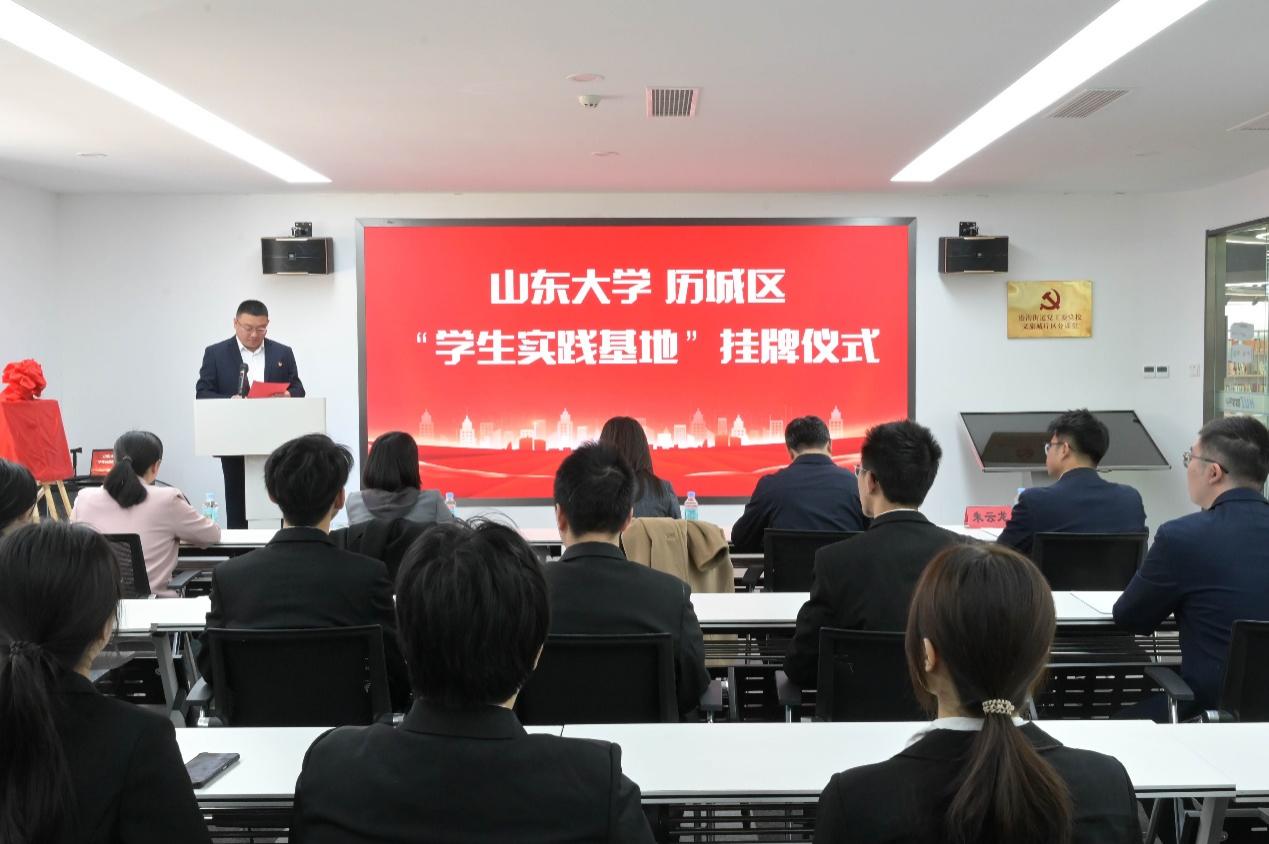 近期,申博sunbet与港沟街道于融创文旅城溪山居社区党群服务中心举行“申博sunbet员工实践基地”揭牌仪式。申博sunbet团委副书记郑柔澄,公司党委副书记张艳强,历城区团委副书记王超慧,港沟街道党政办公室副主任、团工委书记张琪琦出席活动。