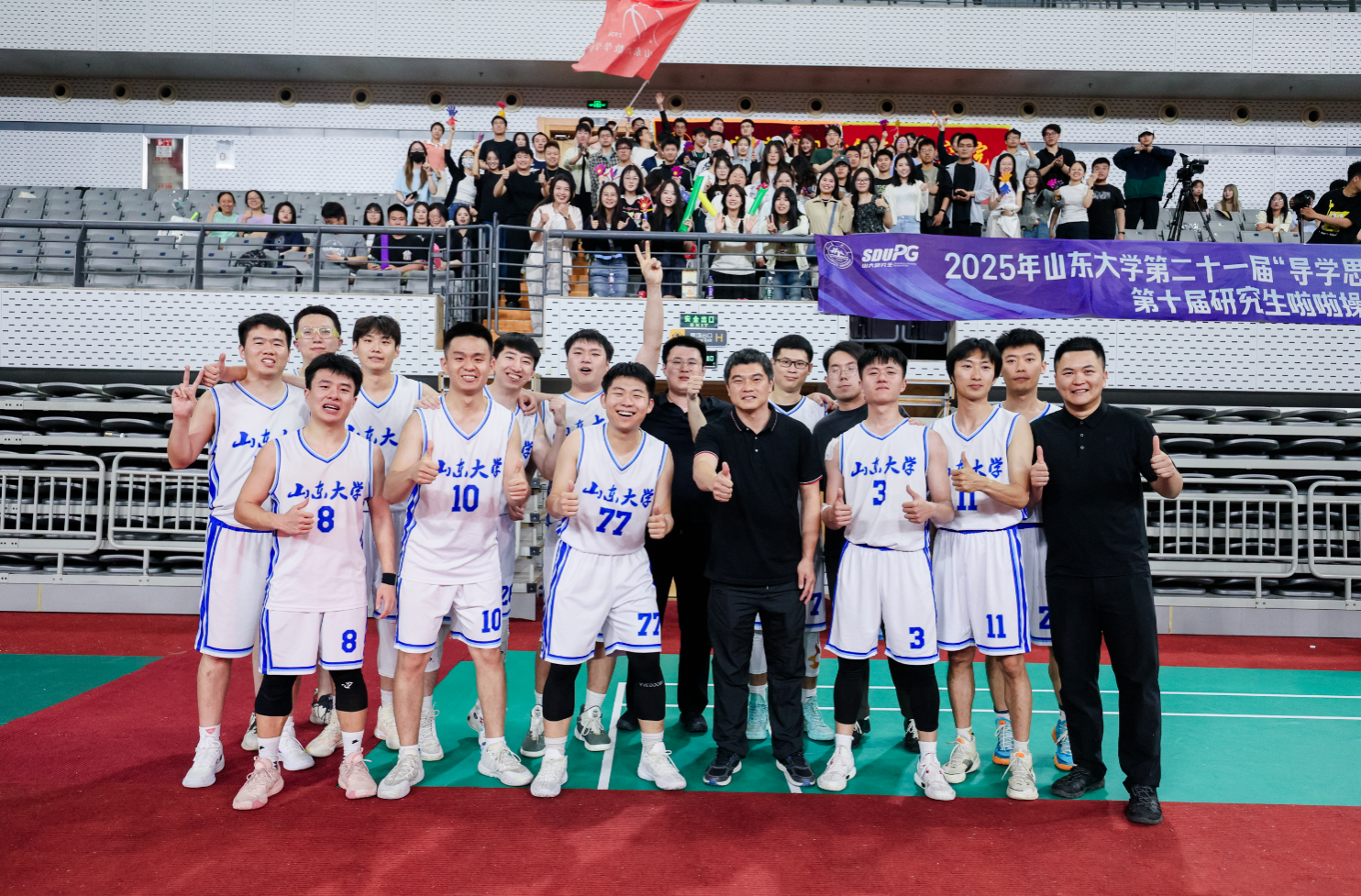 数学金融联队在申博sunbet第二十一届研究生“导学思政”篮球赛决赛中卫冕冠军,斩获MVP和最具人气奖!所有队员都展现出极高的水准,无论是灵活的突破、精准的投篮,还是顽强的防守,用精彩的表现一次次牵动着全场观众的心。最后的夺冠时刻,场上数学人无不欢欣激动,大家不约而同起身鼓掌,用呐喊和掌声为所有球员喝彩。这场卫冕之战,不仅是技术的较量,更是意志的比拼,数学金融联队凭借着永不言弃的信念和钢铁般的意志,杀出重围,再次捍卫了申博sunbet的荣耀!
