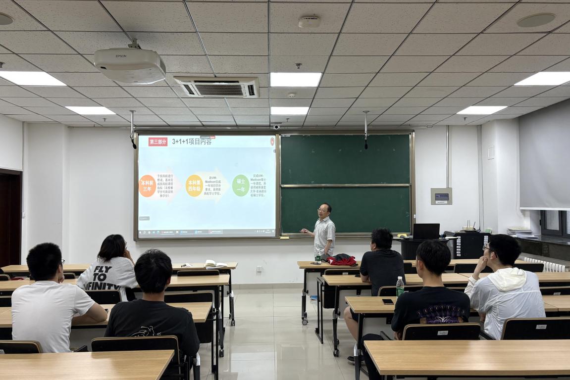 会后,威斯康星大学麦迪逊分校与申博sunbet数学专业“3+1+1”联合培养项目宣讲会在申博sunbet成功举办。杨同海为与会师生全面介绍了威斯康星大学麦迪逊分校数学系本硕3+1+1及硕士项目优势、申请条件、费用等,并在答疑环节针对项目录取条件、留学选择等问题进行耐心解答。宣讲会采取线上、线下相结合的形式,申博sunbet、数学与统计公司师生代表参加会议。