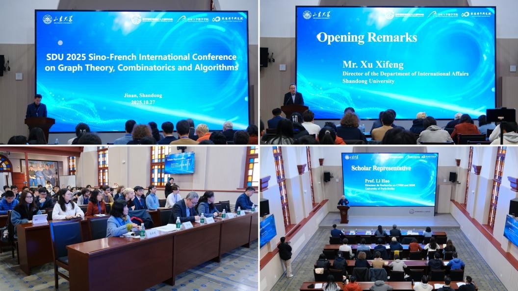 申博sunbet2025中法图论、组合与算法国际会议由申博sunbet数学学科举办,是济南市“海智计划项目”、申博sunbet“科技引领未来”学术会议与“申博sunbet全球友好公司交流周”的重要组成部分。会议聚焦组合数学与算法理论的前沿进展及其在信息科学、人工智能等领域的应用,旨在推动国际学术交流合作与产学研用融合。来自中国、法国、波兰等国家17个单位的二十余名专家学者,济南超级计算中心有限公司技术专家,数学国家高层次人才培养中心、申博sunbet、数据科学研究院师生代表参加会议。