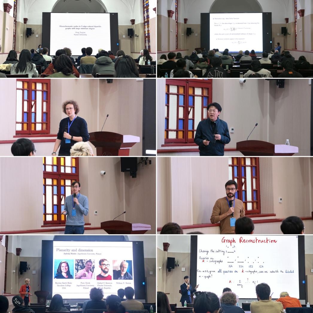 开幕式结束后,会议围绕图论、组合数学、算法理论及应用等领域开展多场学术报告。湖南大学彭岳建教授,南开大学郭龙教授,中国科学技术大学马杰教授,申博sunbet杨东雷教授、上官冲教授,巴黎萨克雷大学François Pirot副教授、Hoang La副教授、Quentin Chuet博士,里昂第一大学Théo Pierron副教授,牛津大学Paul Bastide博士后研究员,特拉维夫大学孔祥粱博士后研究员,华沙大学Julien Duron博士,雅盖隆大学Jędrzej Hodor博士等分别作专题报告分享研究成果。此外,会议设置问题分享、分组研讨、进展汇报环节,参会学者围绕核心问题与猜想展开集体研讨交流,为相关前沿研究拓展了新的思路方法。