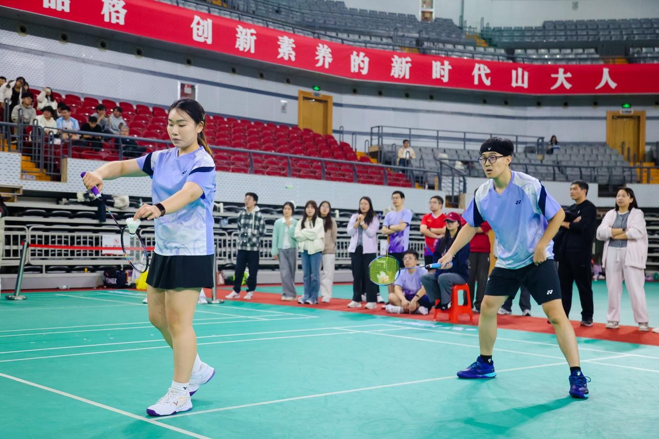 研究生师生羽毛球赛是构建和谐导学关系、推进“五育并举”育人体系的重要实践平台。公司党委高度重视研究生体育美育工作,积极创建导学互动场景,引导师生在体育美育中强健体魄,锤炼意志,和谐共进,凝聚力量,打造“学在山大,快乐成长”的数学方案,奋力书写为中国式现代化挺膺担当的数学篇章。