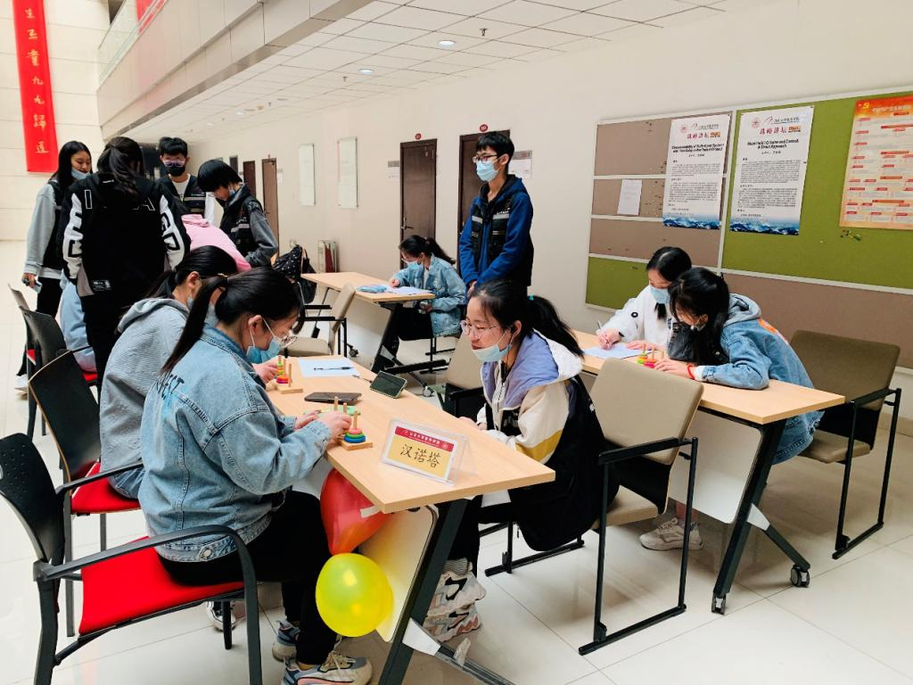 The Tower of Hanoi is a puzzle game that is associated with an ancient Indian legend. There were three rods labeled A, B and C. The disks of different sizes stacked on Rod A from top to bottom in a conical shape. The player needed to move all the disks to Rod B, one at a time, with the rule that a larger disk could never be placed on top of a smaller disk. Three levels of difficulty were set according to the number of layers, and the students were rewarded for completing the game.