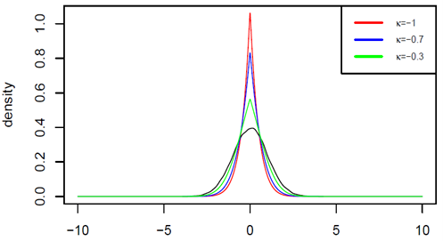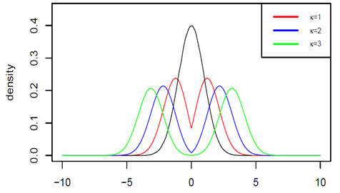 and the monotonicity of the utility function. When k < 0, the nonlinear normal distribution is needle-like (Figure 1); when k > 0, the nonlinear normal distribution is in the form of bimodal distribution (Figure 2); and when k = 0, it degenerates into a classical normal distribution.